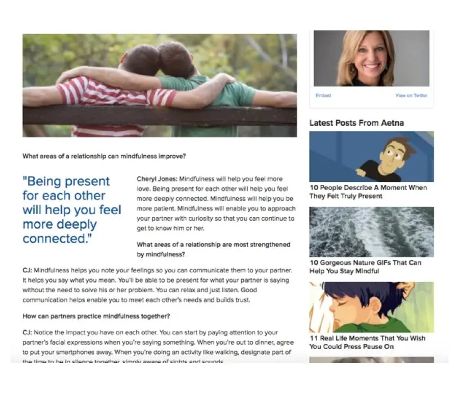 After a quick survey of friends and co-workers, I learned "mindfulness" was a term people only vaguely understood. We needed to educate the public about "mindfulness" through Aetna.