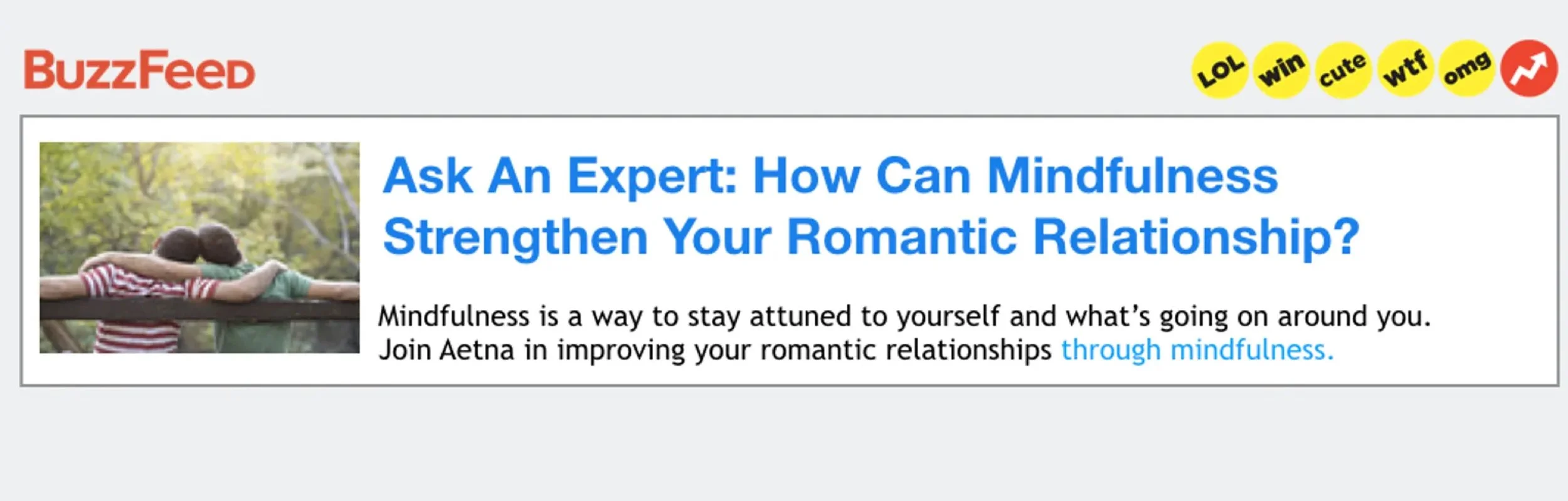 In this three part series, BuzzFeed and Aetna explore mindfulness through engaging, top of mind topics.